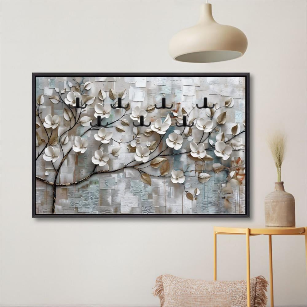 لوحة جدارية بتصميم أنيق لتعليق العبايات – 7 تعاليق وبرواز خارجي