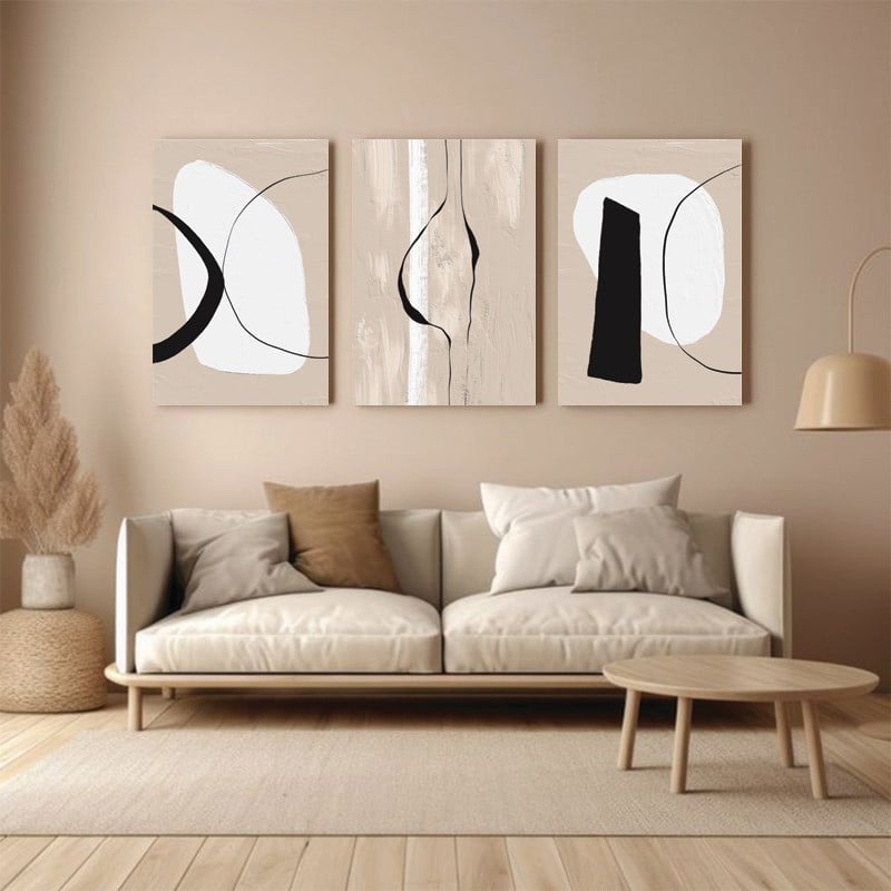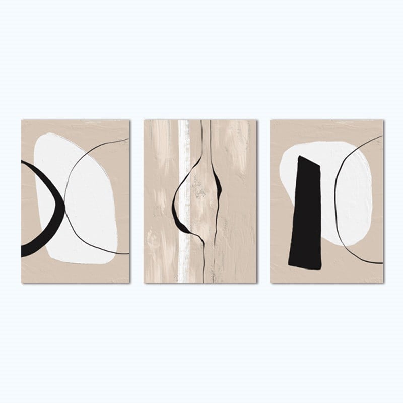 طقم 3 لوحات جدارية تجريدية بألوان محايدة وخطوط فنية بسيطة