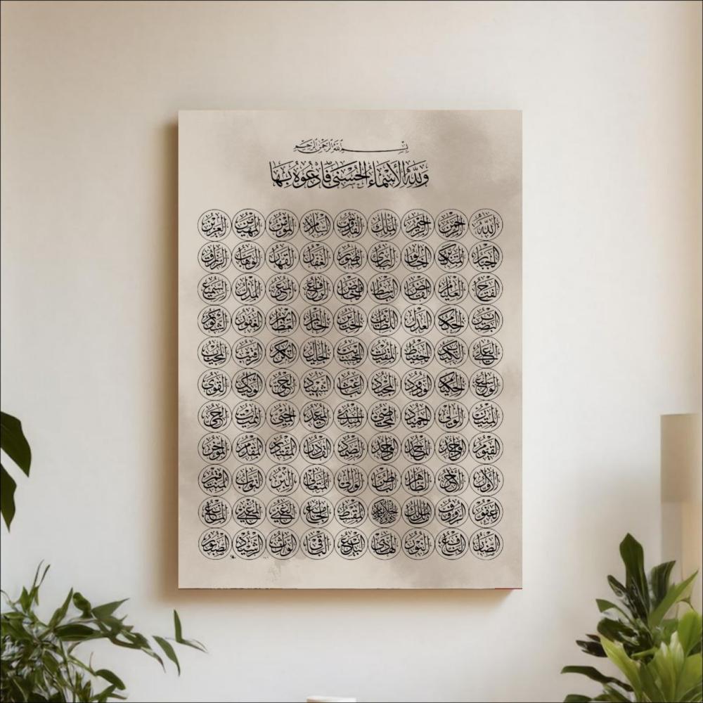 لوحة إخفاء الطبلون مغناطيسية أسماء الله الحسنى طباعة كانفس