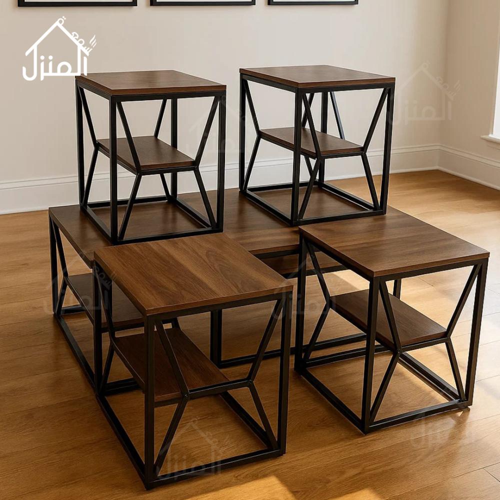 طقم 5 طاولات قهوة سطح خشب لون بني