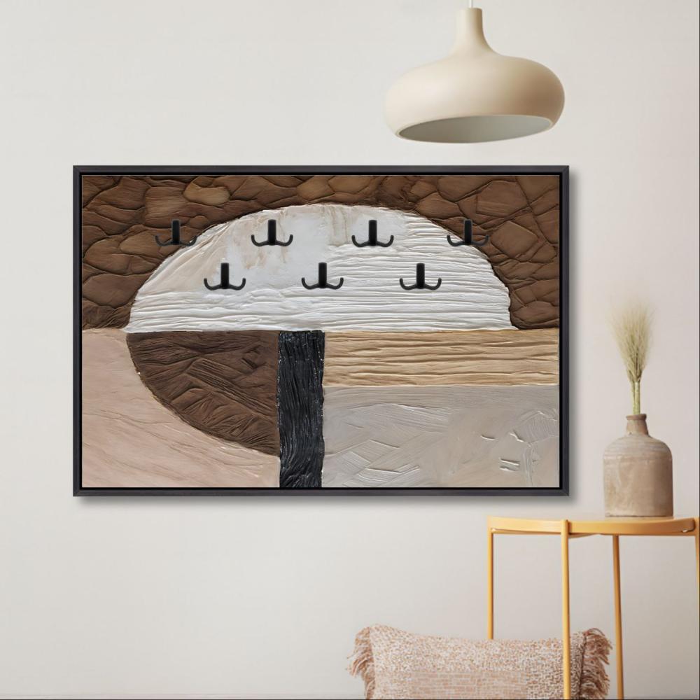 لوحة جدارية بتصميم أنيق لتعليق العبايات – 7 تعاليق وبرواز خارجي