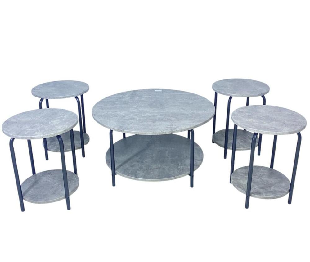 طقم 5 طاولات قهوة سطح خشبي لون رصاصي