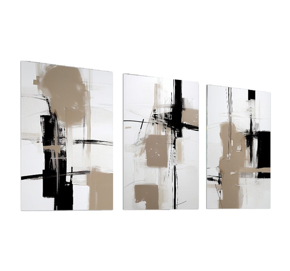 طقم 3 لوحات جدارية تجريدية بالأبيض والأسود والبيج