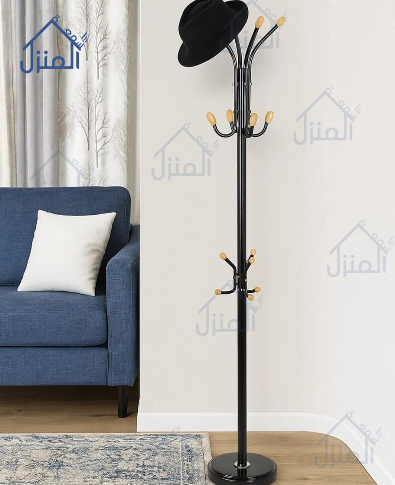 شماعة أرضية أنيقة تجمع بين المعدن القوي والمقابض الخشبية لمظهر عصري مع لمسة دافئة. مصنوعة من معدن متين مطلي باللون الأسود اللامع لمزيد من الفخامة، ومزودة بخطافات متعددة بمقابض خشبية ملساء باللون البني الفاتح، موزعة على ارتفاعات مختلفة لتوفير مساحة مثالية لتعليق المعاطف، القبعات، الحقائب أو الشالات.