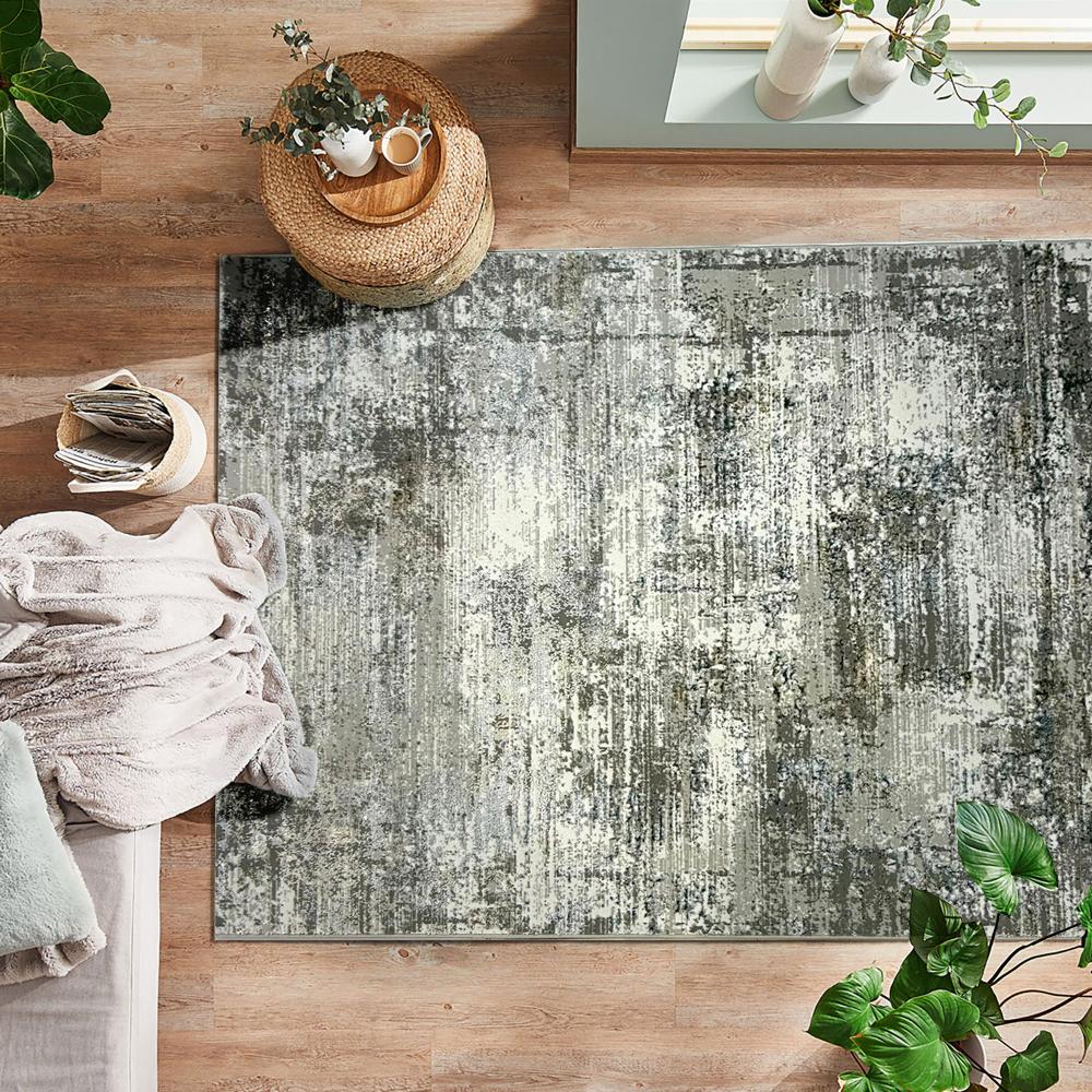 سجاد مودرن أنيق بتدرجات رمادية عصرية، بتأثير مموج يعطي لمسة فنية راقية لأي مساحة. تصميمها التجريدي يضيف عمق وأناقة