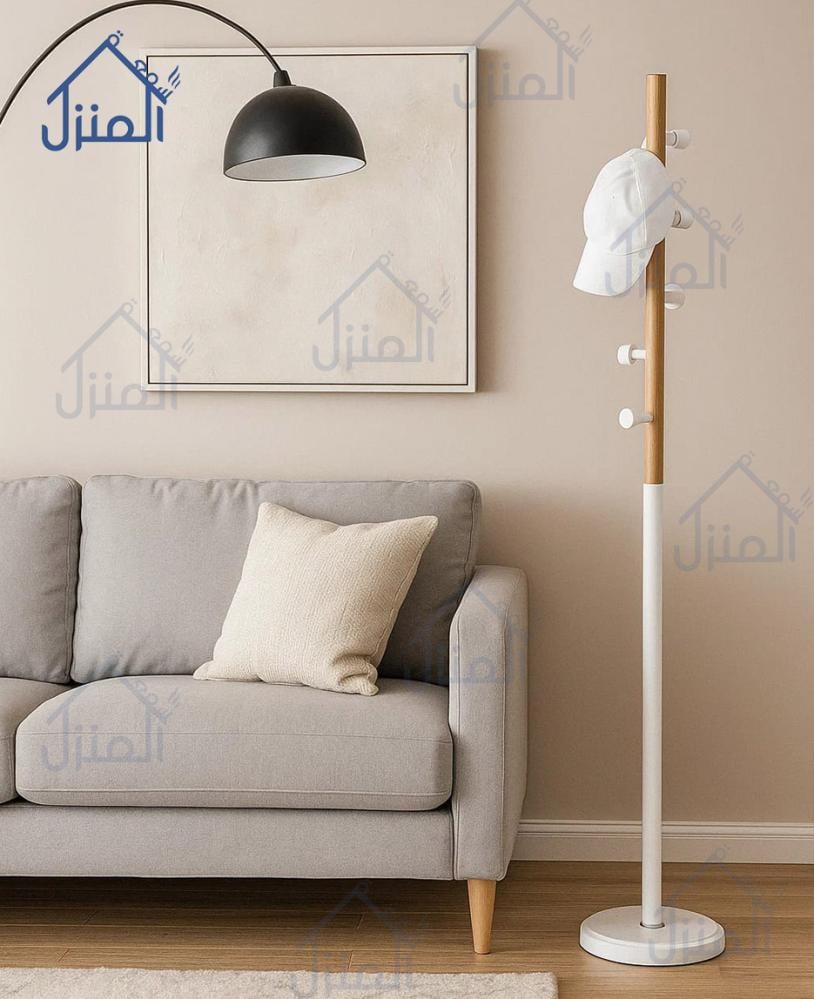 شماعة أرضية بتصميم عصري يجمع بين المعدن والخشب ليضفي لمسة طبيعية ودافئة على أي مساحة. الجزء العلوي مصنوع من الخشب الفاتح الطبيعي الذي يضفي إحساساً بالدفء، بينما القاعدة والجزء السفلي من المعدن المطلي باللون الأبيض المطفي لثبات ومتانة عالية. مزوّدة بتعليقات دائرية متينة بارتفاعات مختلفة لتعليق المعاطف، القبعات، الحقائب أو الشالات بسهولة وتنظيم مثالي.