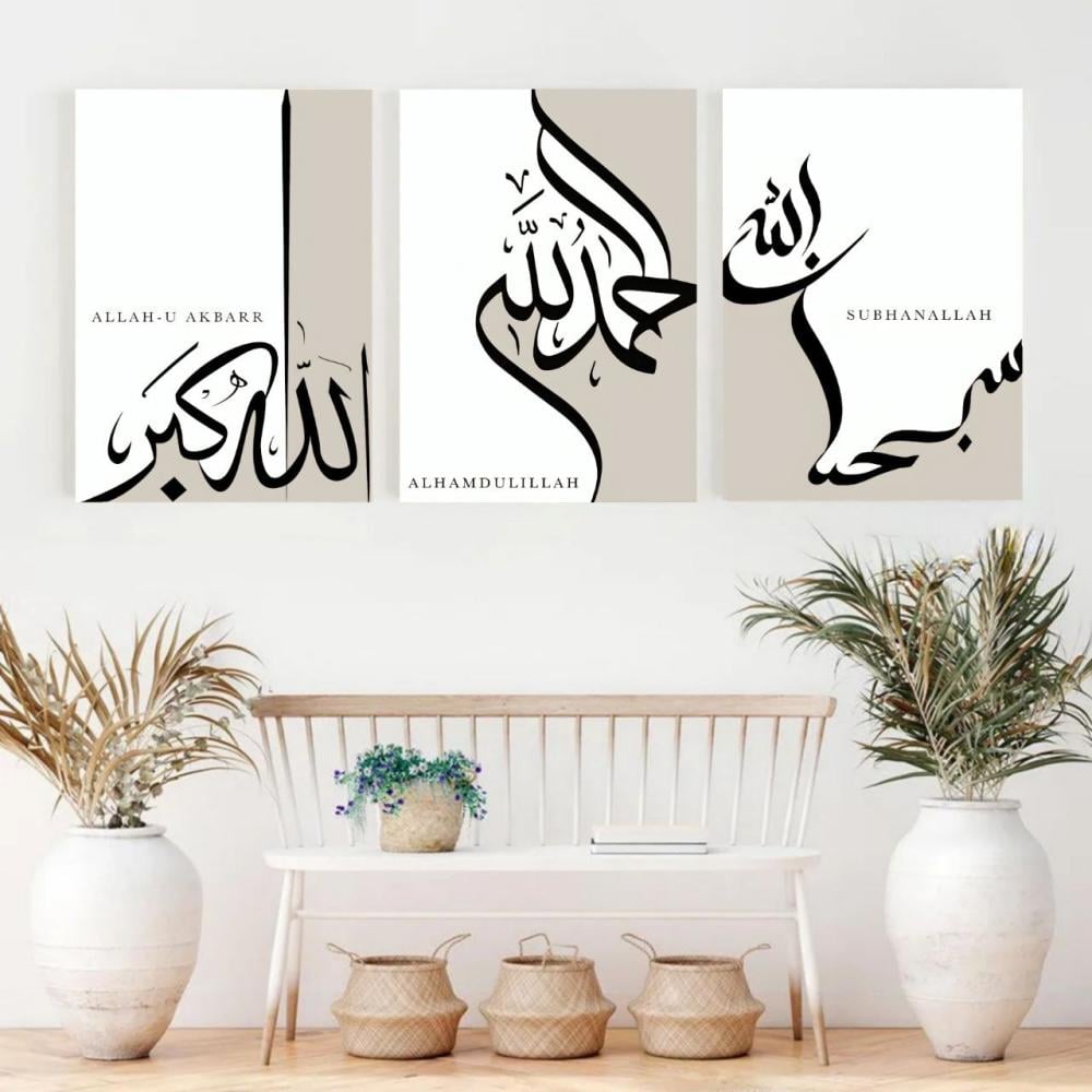 طقم 3 لوحات اسلامية أذكار سبحان الله الحمدالله الله أكبر بيج اسود
