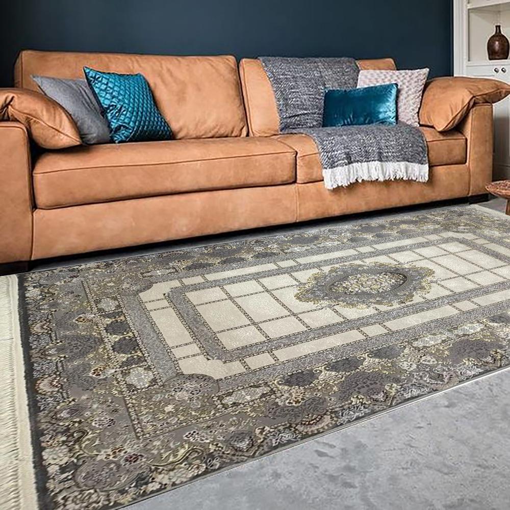 سجاد فخم بطابع ملكي يجمع بين النمط الكلاسيكي والألوان الهادئة. النقشة المركزية محاطة بإطار مزخرف بتفاصيل دقيقة تمنح المكان أناقة مميزة