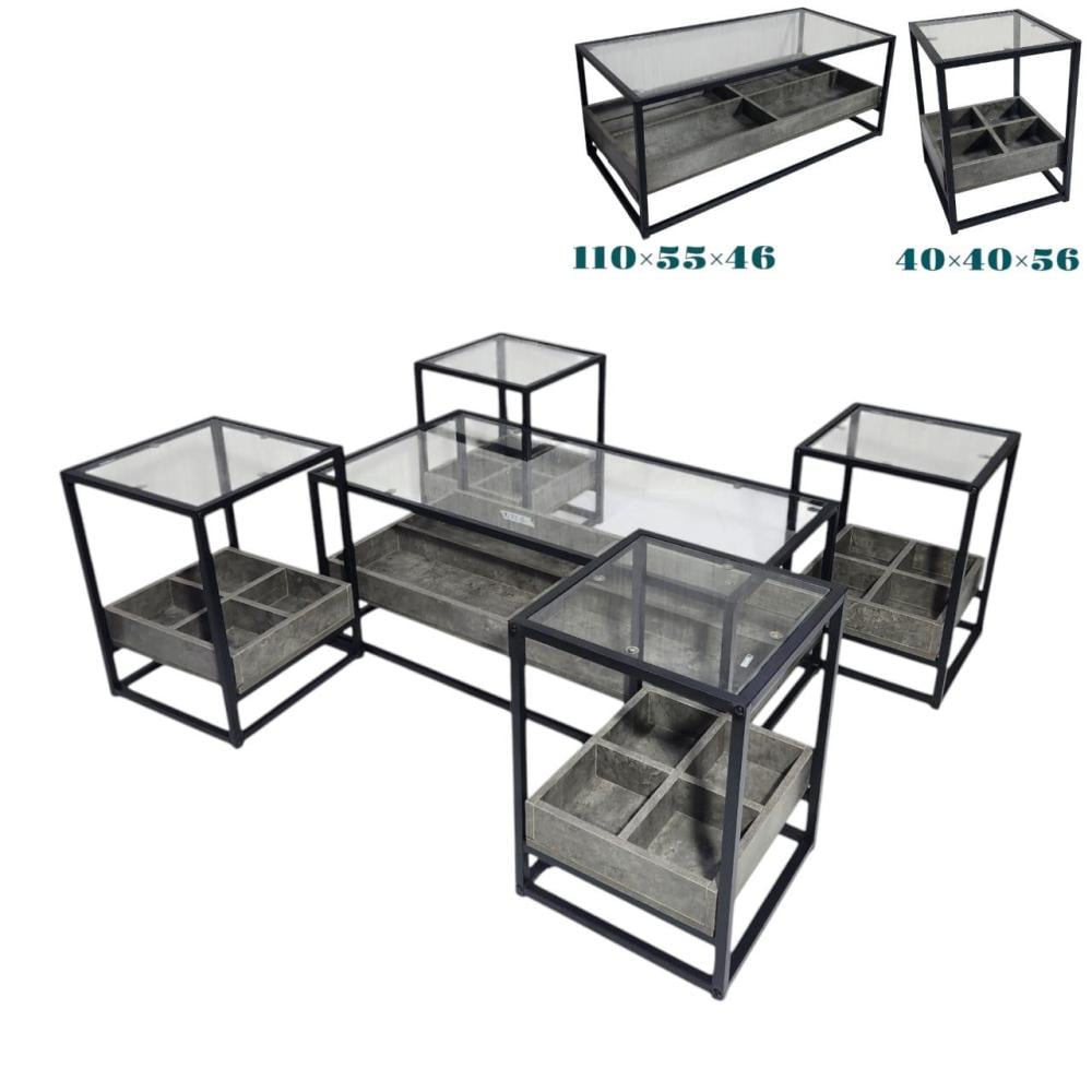 طقم 5 طاولات قهوة سطح خشبي لون رصاصي شكل مستطيل