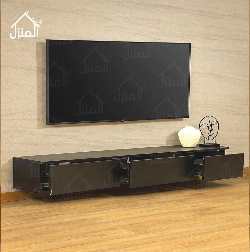 طاولة تلفزيون جدارية معلقة لون اسود مقاس مترين