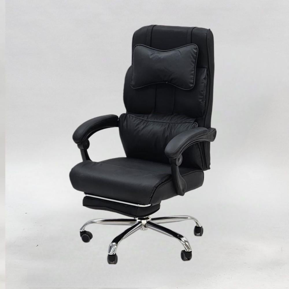 ظهره مريح وبعض الأنواع تجي بوسادة للرأس ودعامة للظهر السفلي عشان ما تحس بتعب لو جلست عليه فترات طويلة وكمان المساند الجانبية للذراع تساعدك ترتاح أكثر