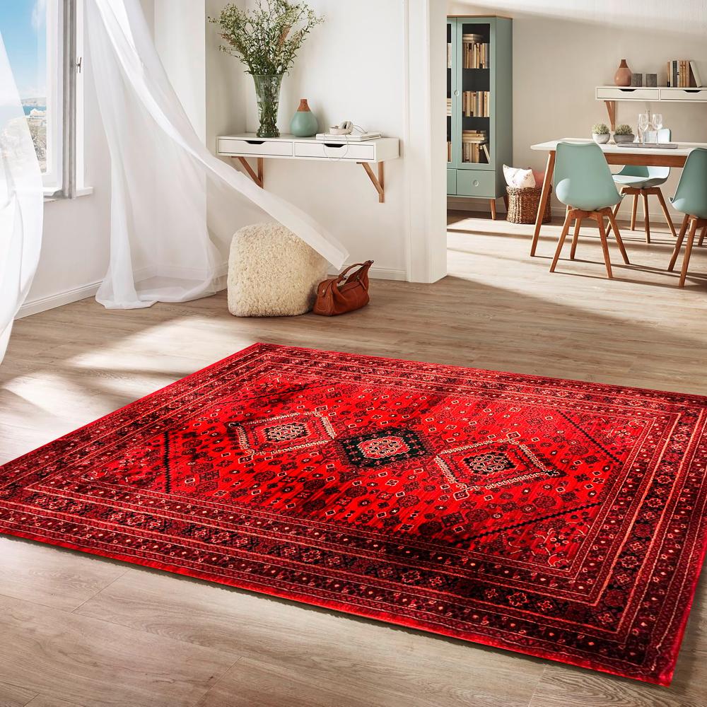 سجاد أحمر تراثي بنقشة هندسية يضيف دفء وأناقة للمكان. مثالي للمجالس والصالات، عملي وناعم وسهل التنظيف