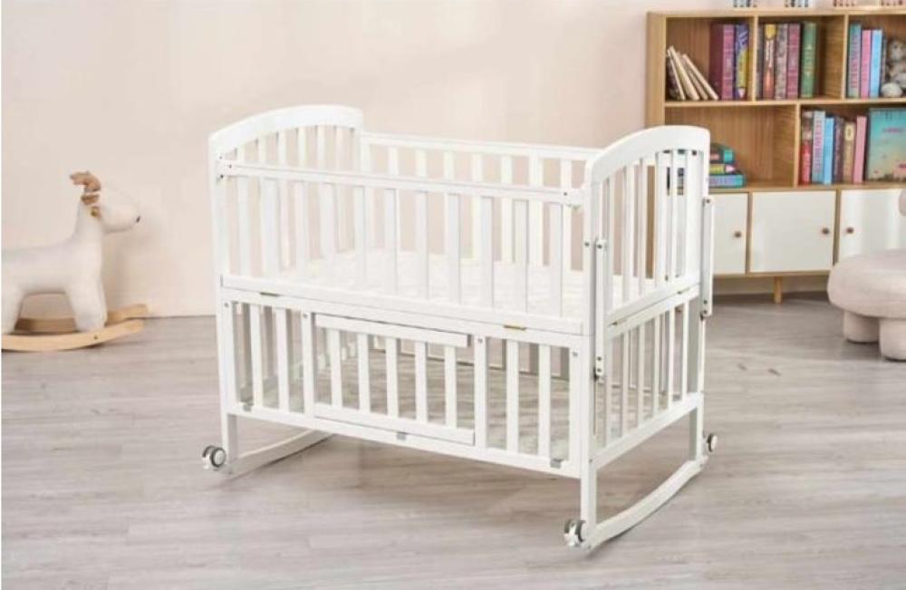 سرير هزاز خشب للأطفال لون أبيض 60X100