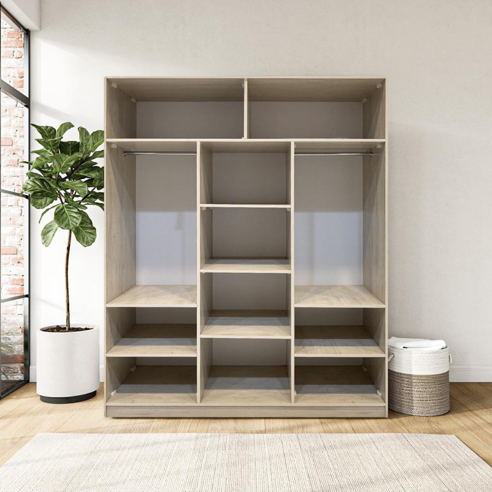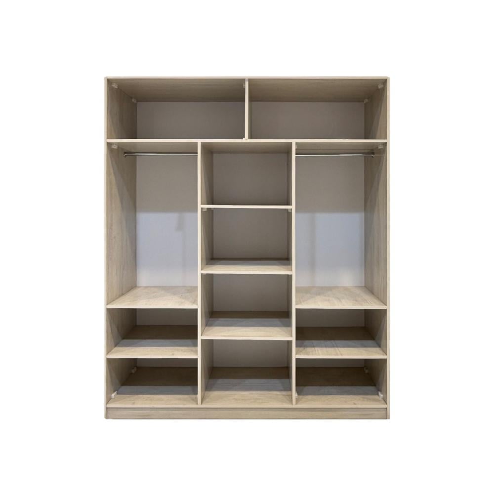 دولاب بتصميم مفتوح عصري وعملي، مصنوع من خشب MDF عالي الجودة بلون بيج دافئ يضفي لمسة هادئة وأنيقة على الغرفة. يتميز بتقسيم ذكي يوفّر جهتين لتعليق الملابس ومساحة وسطية بأرفف للتطبيق، بالإضافة إلى مساحات تخزين علوية وسفلية تساعدك في تنظيم أغراضك بطريقة مريحة ومرتبة.