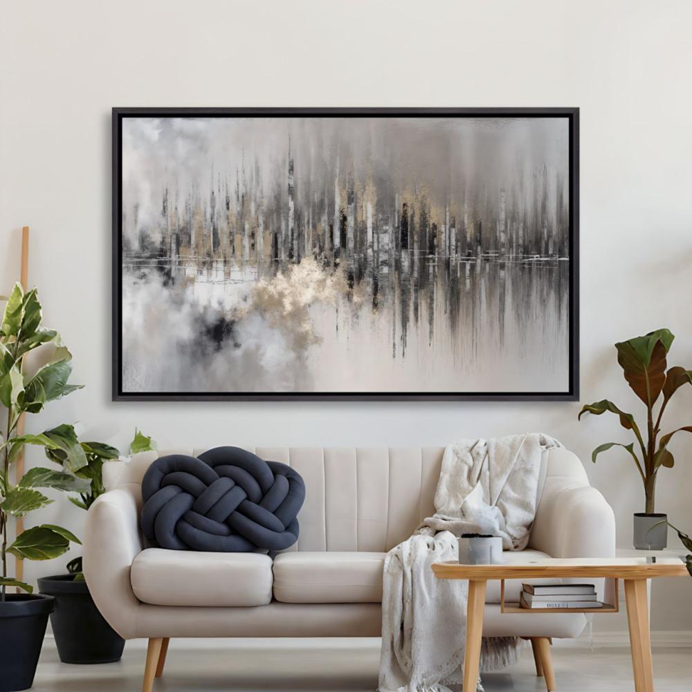لوحة عرضيي تجريدية رمادية بلمسات ذهبية طباعة كانفس