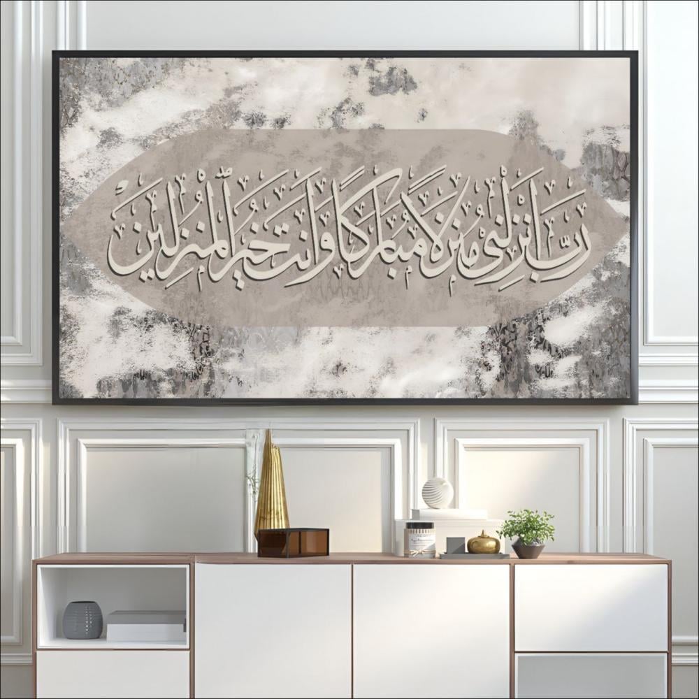 لوحة رب أنزلني منزلا مباركا وأنت خير المنزلين رمادي سكري طباعة كانفس